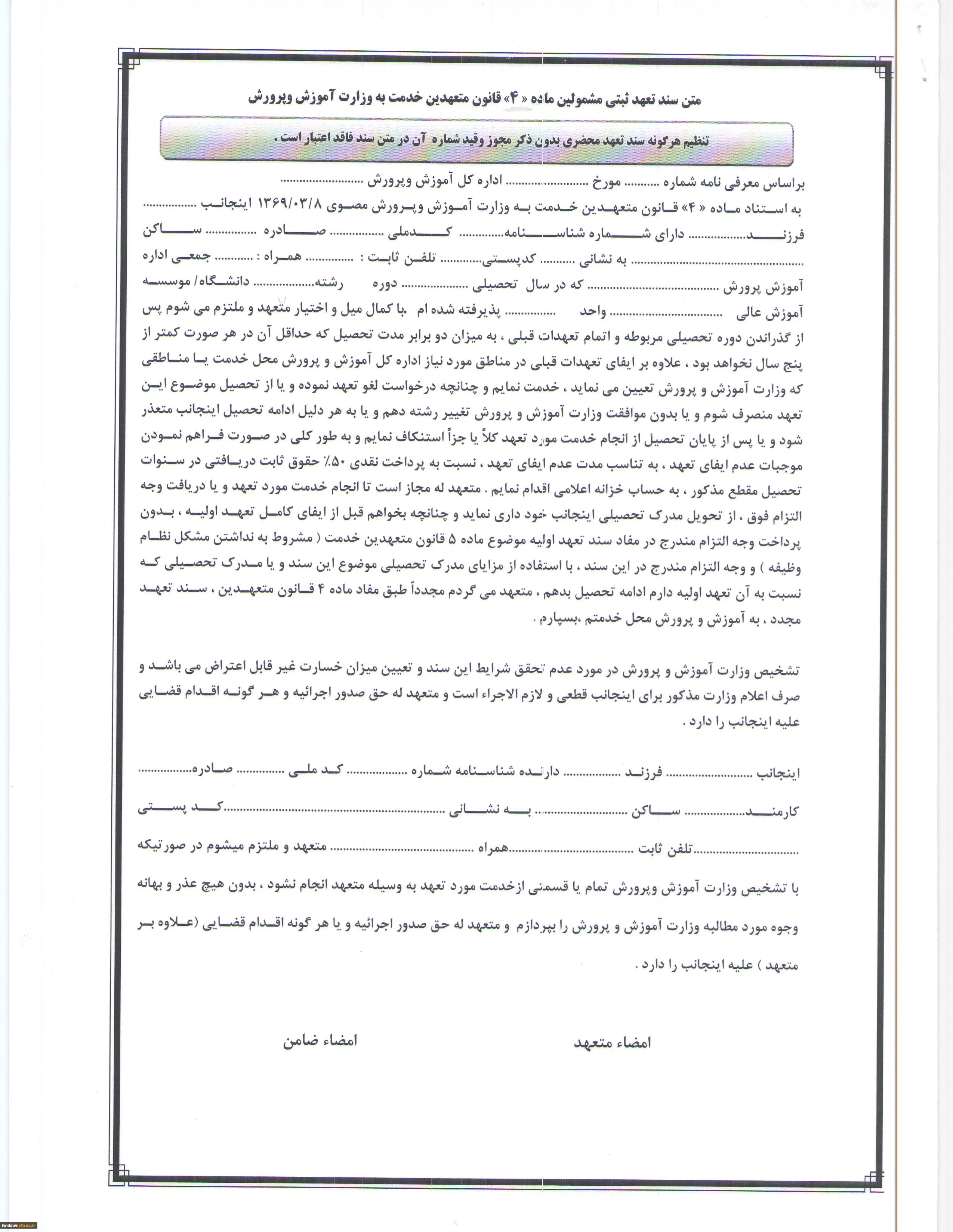 فرم تعهد محضری مجدد