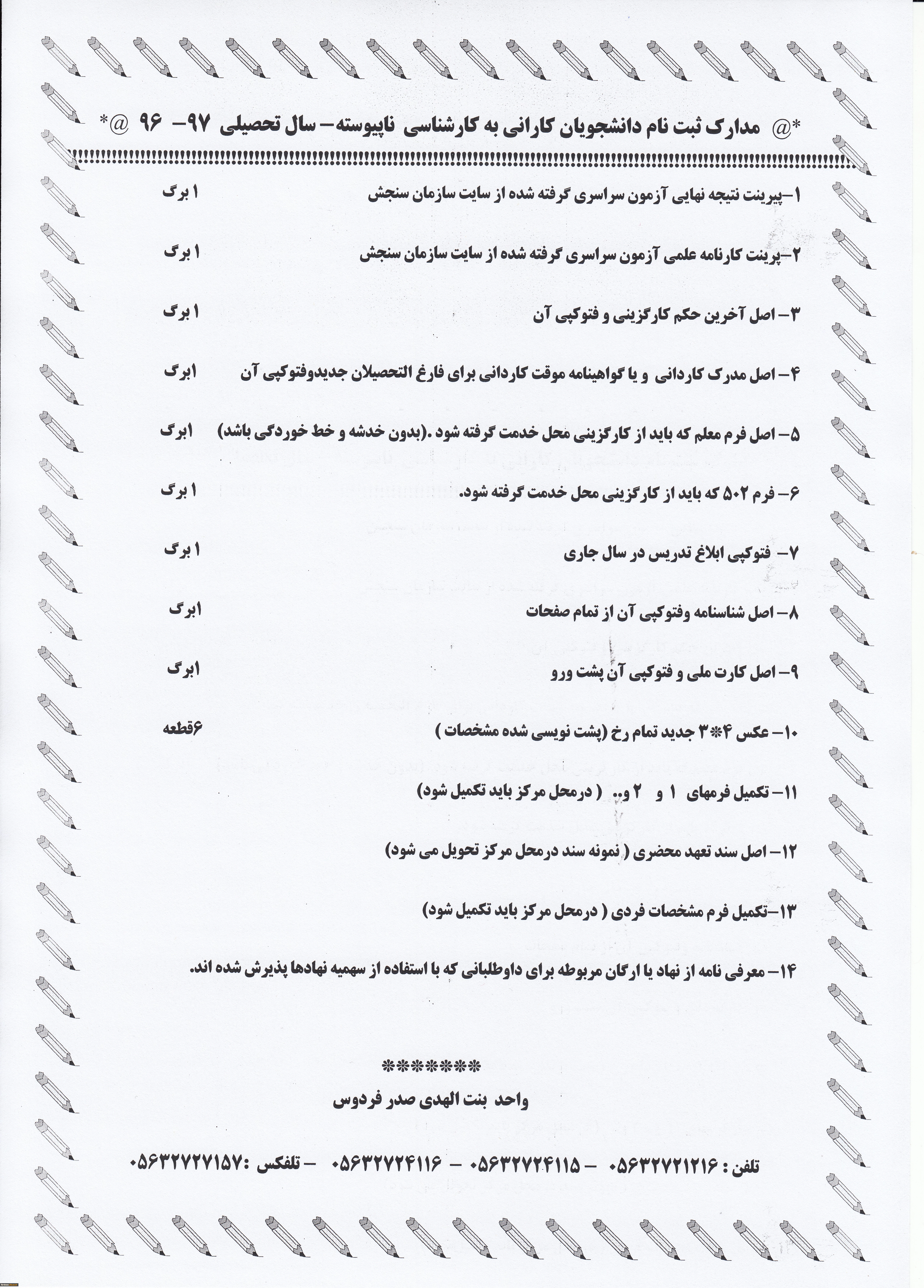 مدارک ثبت نام دانشجویان کارشناشی ناپیوسته 96