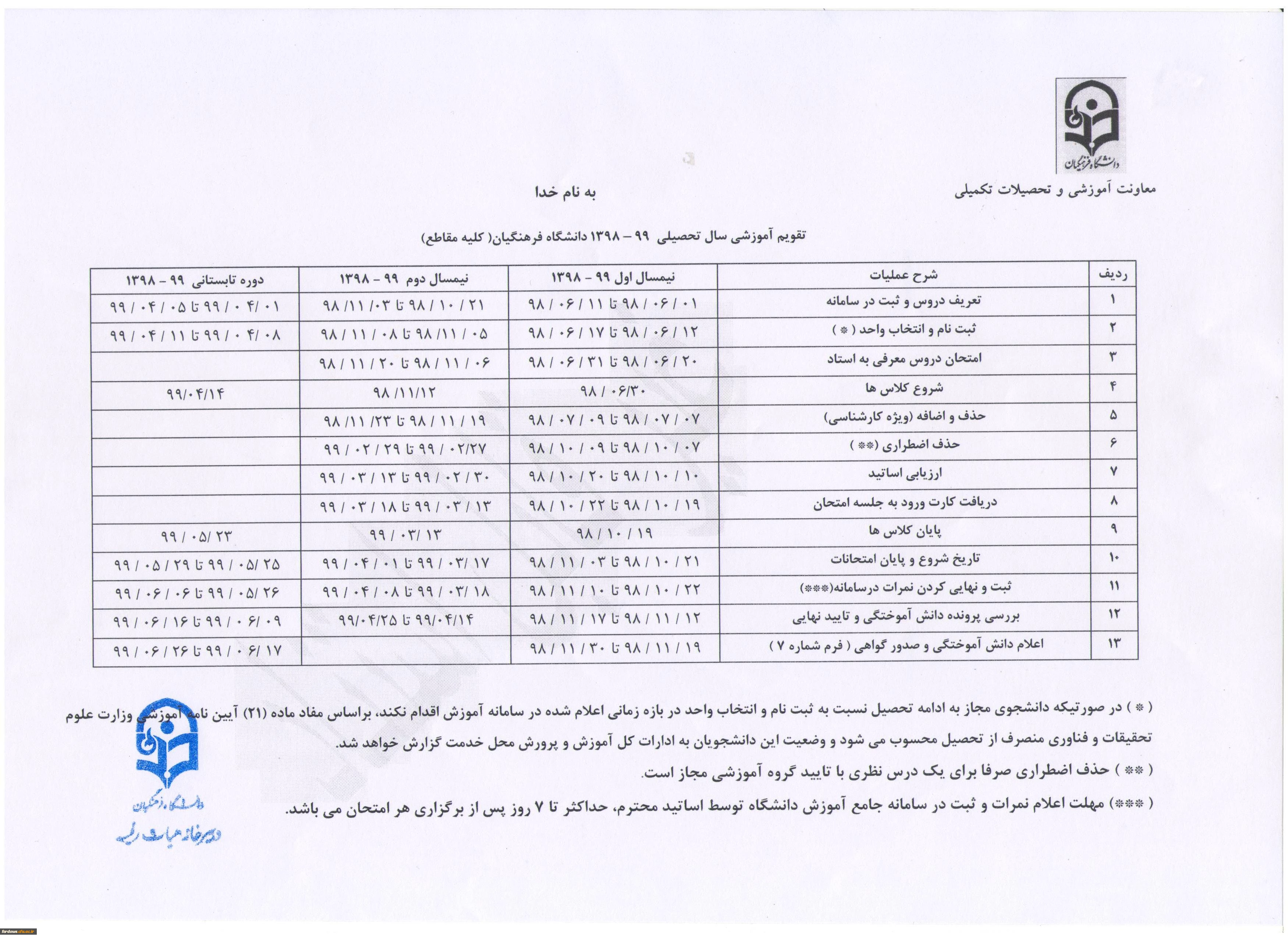 تقویم آموزشی سال 98