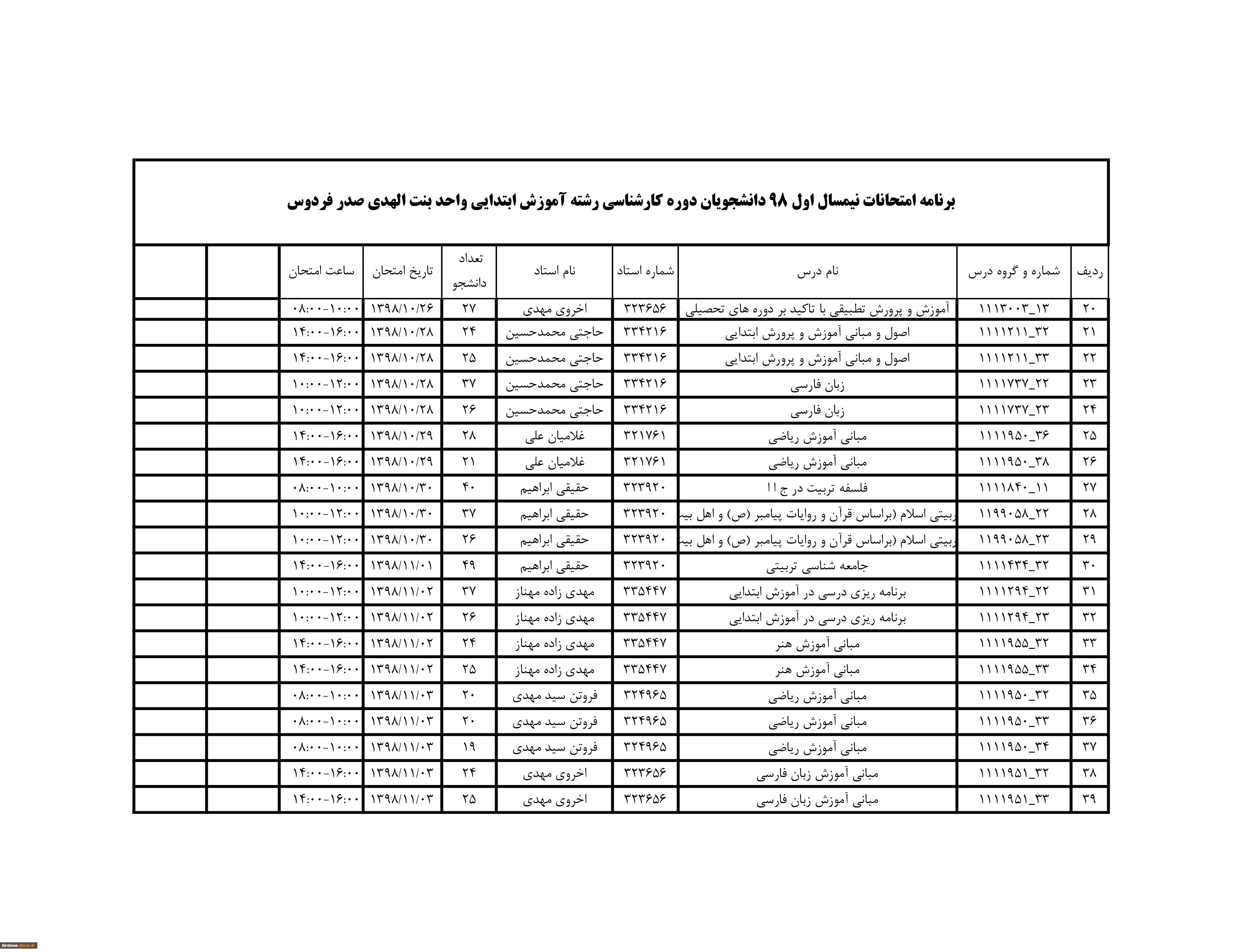 برنامه امتحانی و ارزشیابی اساتید نیمسال اول 98/99 3