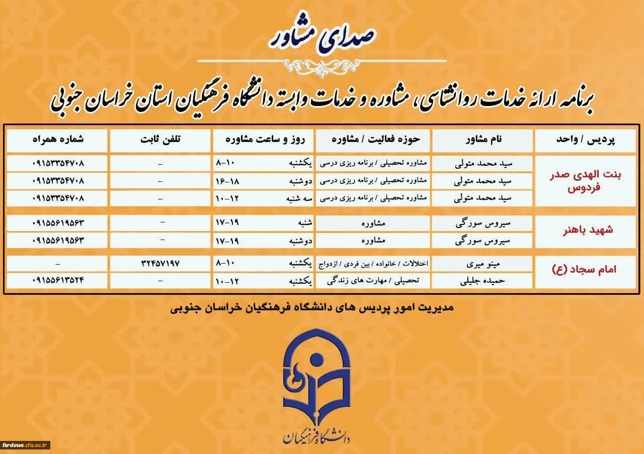 برنامه صدای مشاور مدیریت پردیسهای استان 2