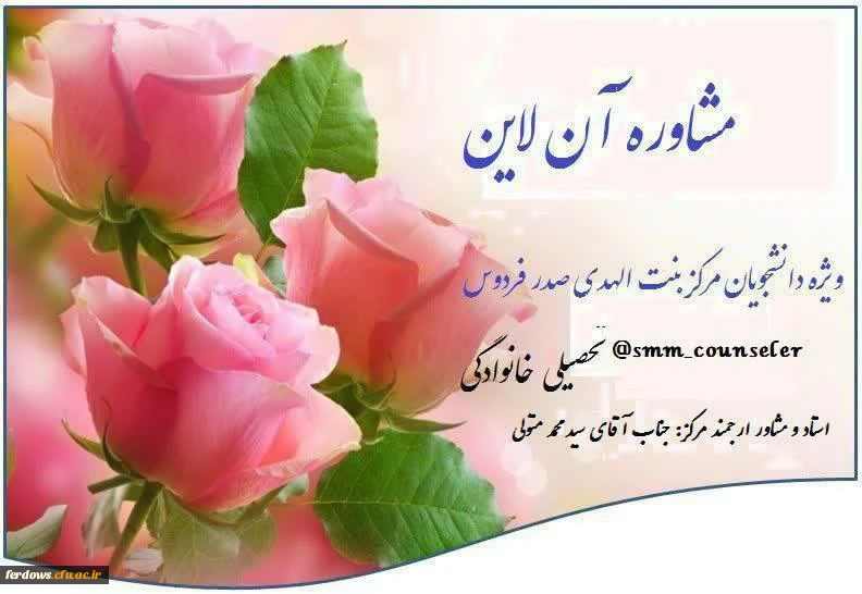 قابل توجه دانشجویان عزیز در صورت داشتن پرسش تحصیلی و خانوادگی به آی دی استاد مشاور مرکز جناب آقای سید محمد متولی مراجعه نمایید.