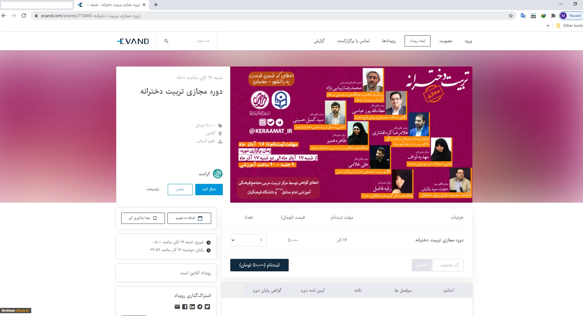 دوره تربیت دخترانه با  محوریت اصلی ؛ تربیت دینی و انقلابی دختران، با همکاری مشترک مجتمع فرهنگی آموزشی امام صادق علیه السلام و نهاد نمایندگی مقام معظم رهبری سازمان مرکزی دانشگاه فرهنگیان