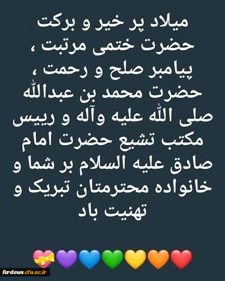 فرا رسیدن 17ربیع الاول خجسته زاد روز رسول مهربانی و عزت ، مبشر آگاهی و حکمت ، پرچمدار عدالت و برابری حضرت ختمی مرتبت محمد مصطفی (ص)، آغاز هفته وحدت و همچنین میلاد مسعود و فرخنده امام جعفر صادق (ع) ، ششمین اختر تابناک امامت و ولایت و مؤسس مذهب جعفری بر تما