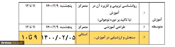 امتیاز دهید : برنامه امتحانات و آزمون پایانی مهارت آموزان نوبت اول ورودی بهمن 99 6 شنبه 28 فروردین 1400 ساعت 11:53