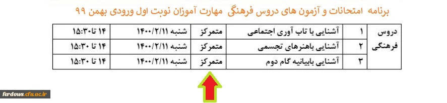 امتیاز دهید : برنامه امتحانات و آزمون پایانی مهارت آموزان نوبت اول ورودی بهمن 99 7 شنبه 28 فروردین 1400 ساعت 11:53