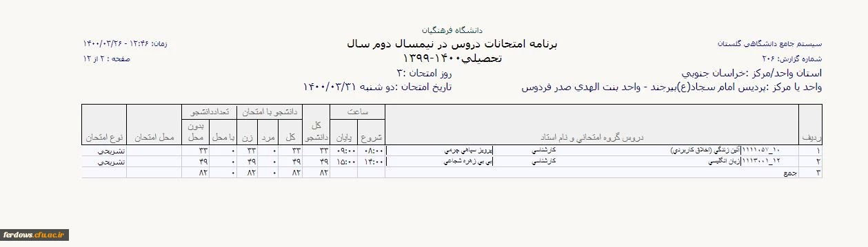 قابل توجه دانشجویان دوره کارشناسی پیوسته - برنامه امتحانات نیمسال دو م 1399 4