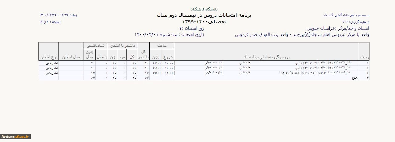 قابل توجه دانشجویان دوره کارشناسی پیوسته - برنامه امتحانات نیمسال دو م 1399 5