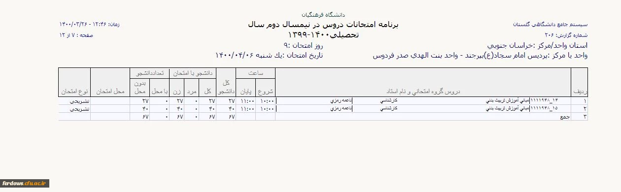 قابل توجه دانشجویان دوره کارشناسی پیوسته - برنامه امتحانات نیمسال دو م 1399 9