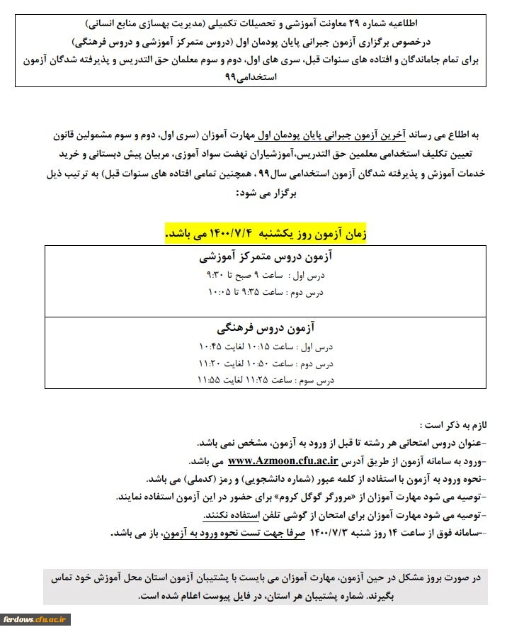 اطلاعیه شماره 29 مهارت آموزان - آزمون مجدد 2
