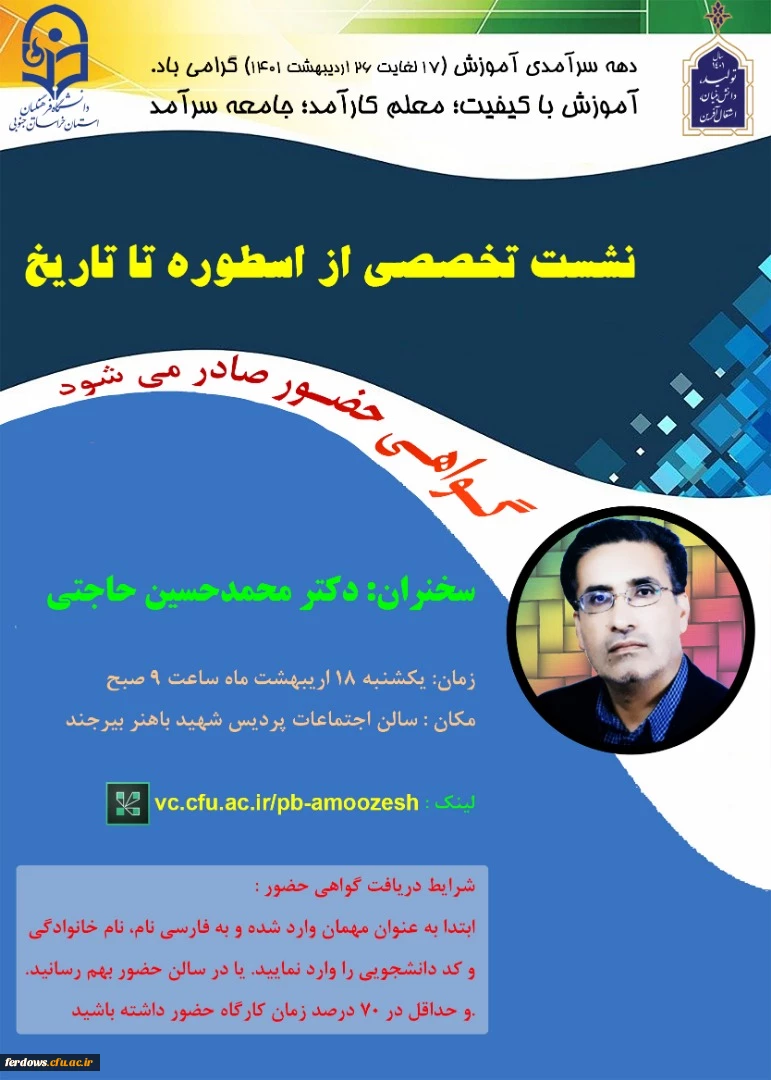 نشست تخصصی از اسطوره تا تاریخ به مناسبت دهه سر آمد آموزش(17 لغایت 26 اردیبهشت 1401) 2