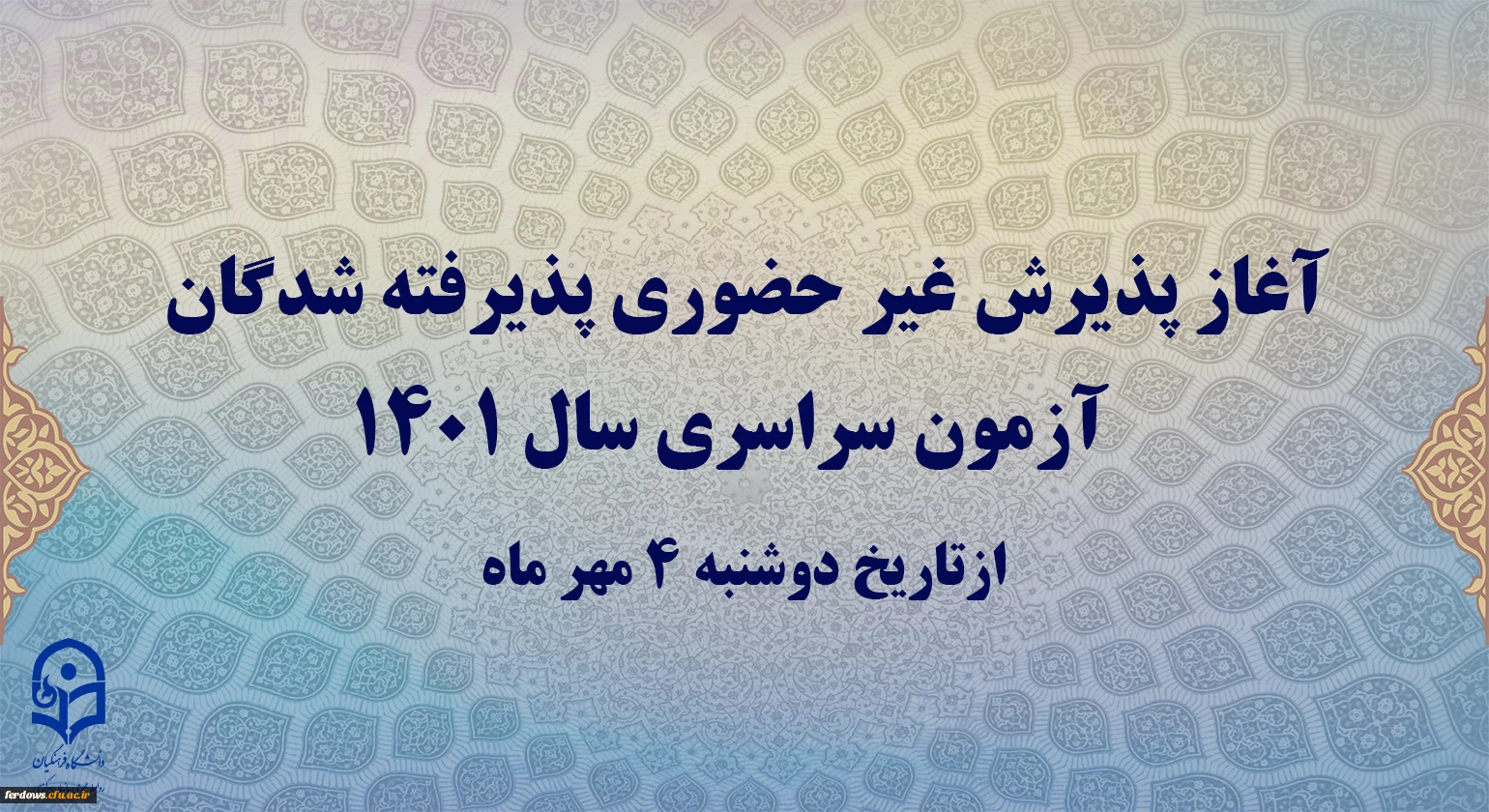 امتیاز دهید : آغاز پذیرش غیر حضوری پذیرفته شدگان آزمون سراسری سال 1401 3 چهارشنبه 6 مهر 1401 ساعت 8:03