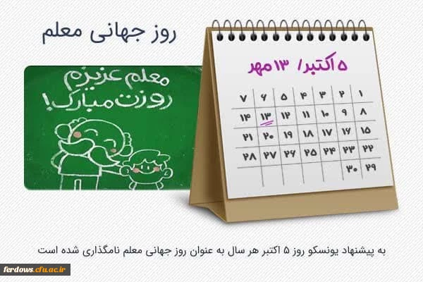 امتیاز دهید : روز جهانی معلم بر تمام معلمان و دانشجومعلمان عزیز گرامی باد. 2 پنجشنبه 13 مهر 1402 ساعت 15:00