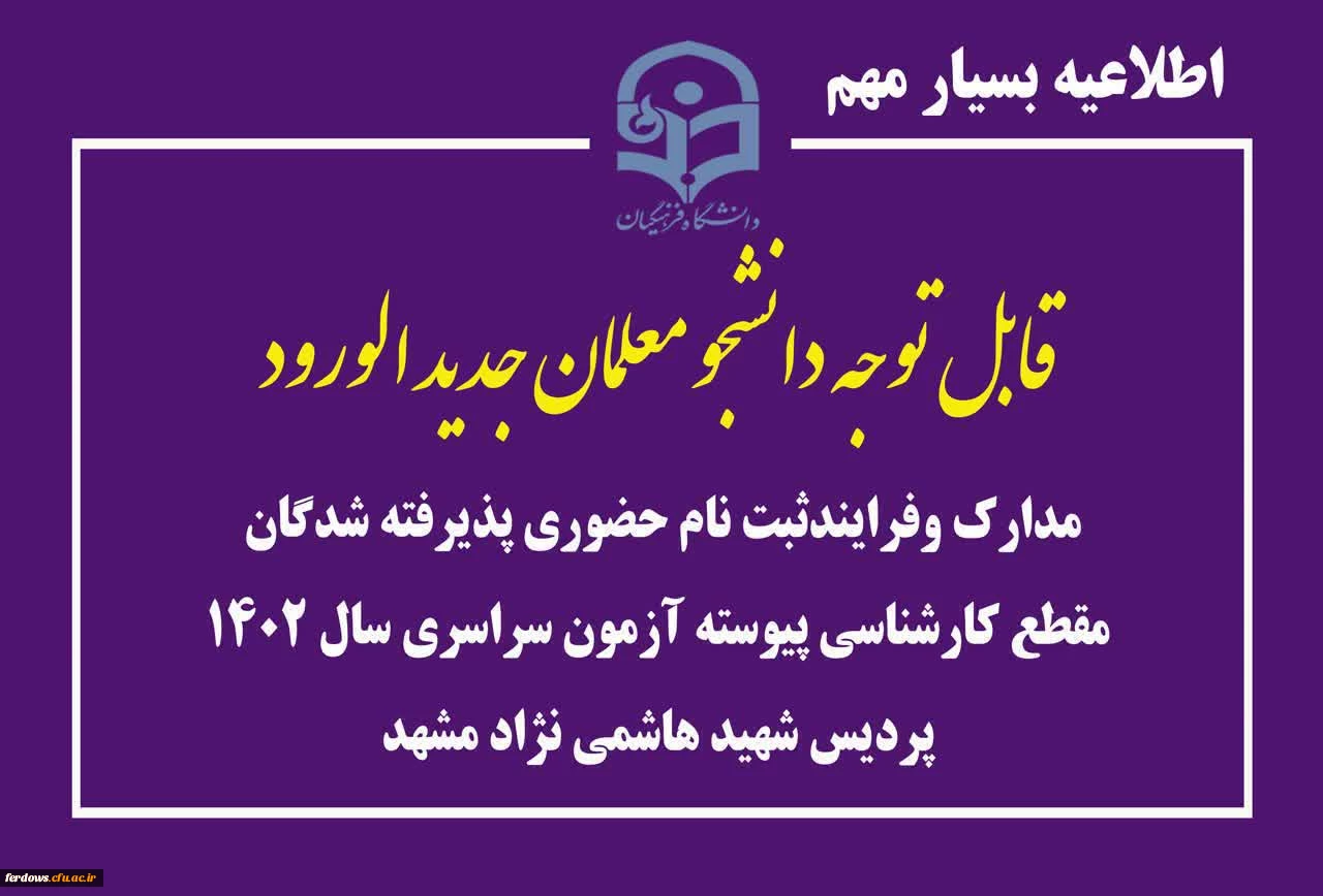 مدارک وفرایندثبت نام حضوری پذیرفته شدگان دوره کاردانی آموزش ابتدایی آزمون سراسری سال ۱۴۰۲ دانشگاه فرهنگیان واحد بنت الهدی صدر فردوس 2