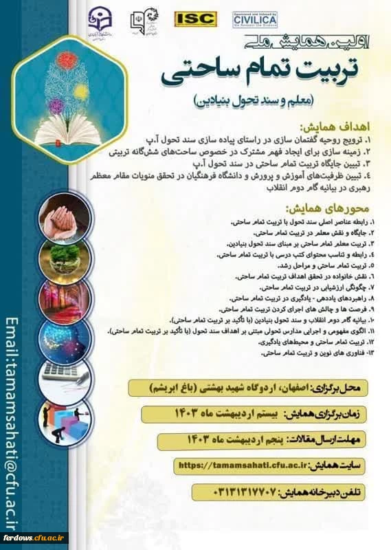 امتیاز دهید : اولین همایش ملی تربیت تمام ساحتی (معلم و سند تحول بنیادین) 2 سهشنبه 28 فروردین 1403 ساعت 19:26