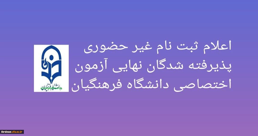 اعلام زمان ثبت نام غیر حضوری پذیرفته شدگان نهایی آزمون اختصاصی دانشگاه فرهنگیان